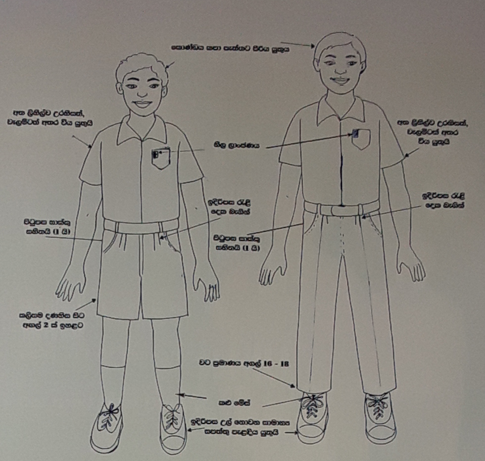 - පාසල් නිල ලාංඡනය පැළදිය යුතුය.